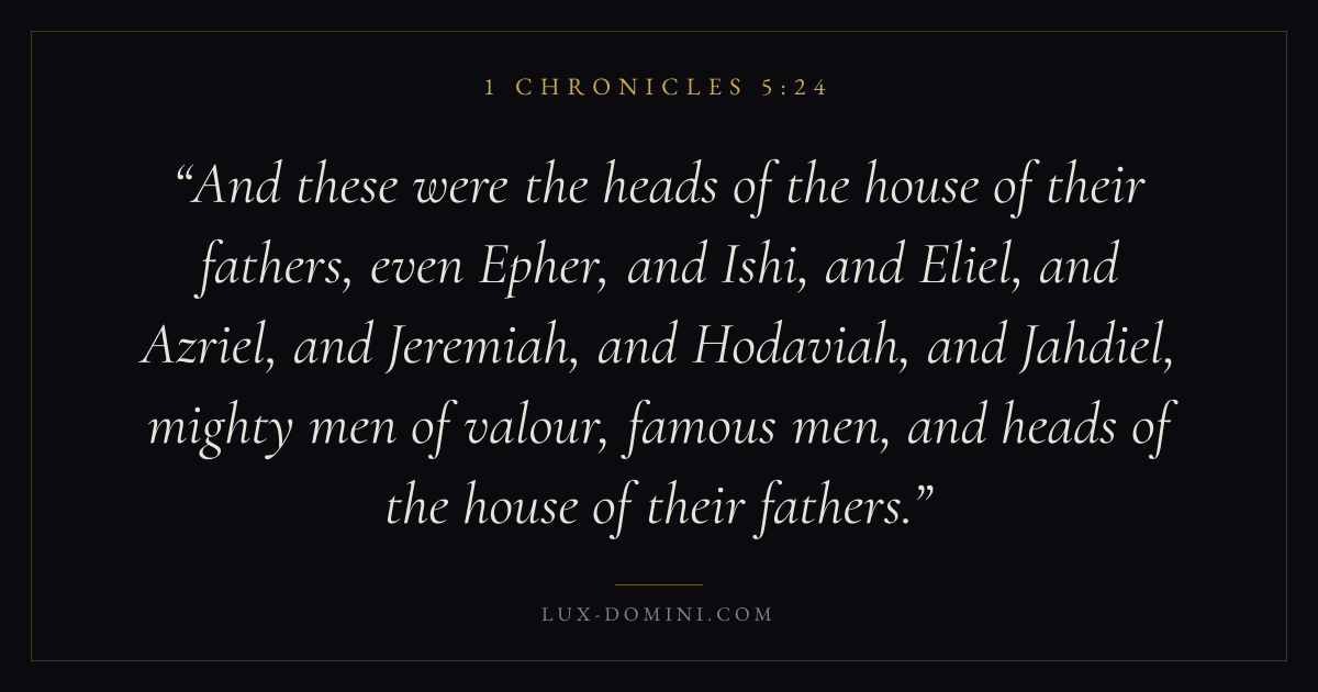 And these were the heads of the house of their fathers, even Epher, and Ishi, and Eliel, and Azriel, and Jeremiah, and Hodaviah, and Jahdiel, mighty men of valour, famous men, and heads of the house of their fathers.