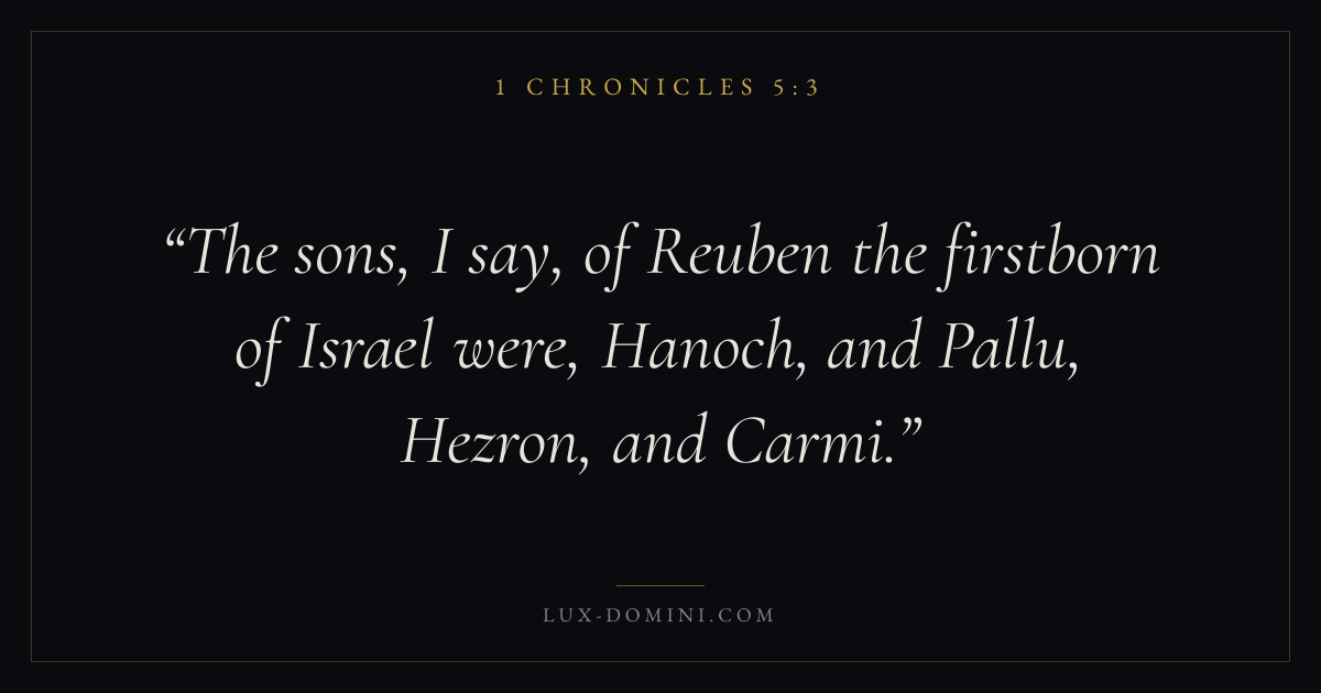 The sons, I say, of Reuben the firstborn of Israel were, Hanoch, and Pallu, Hezron, and Carmi.