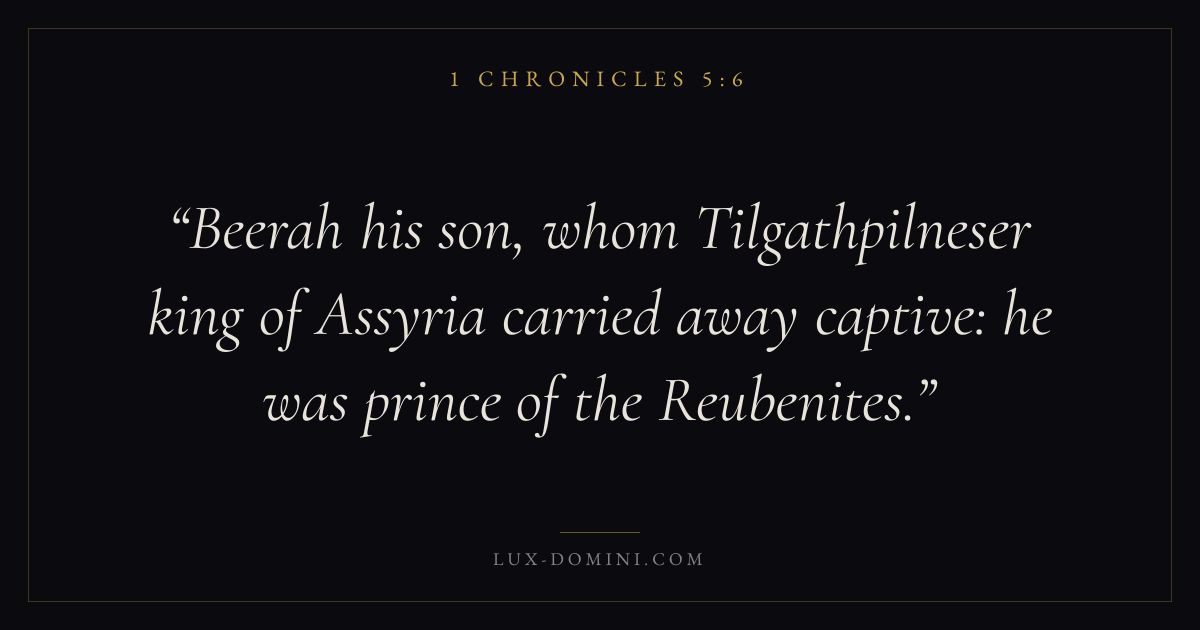 Beerah his son, whom Tilgathpilneser king of Assyria carried away captive: he was prince of the Reubenites.