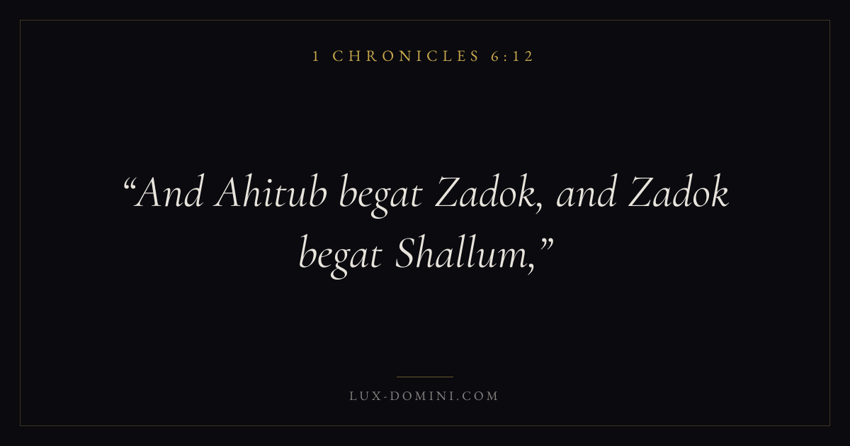 And Ahitub begat Zadok, and Zadok begat Shallum,