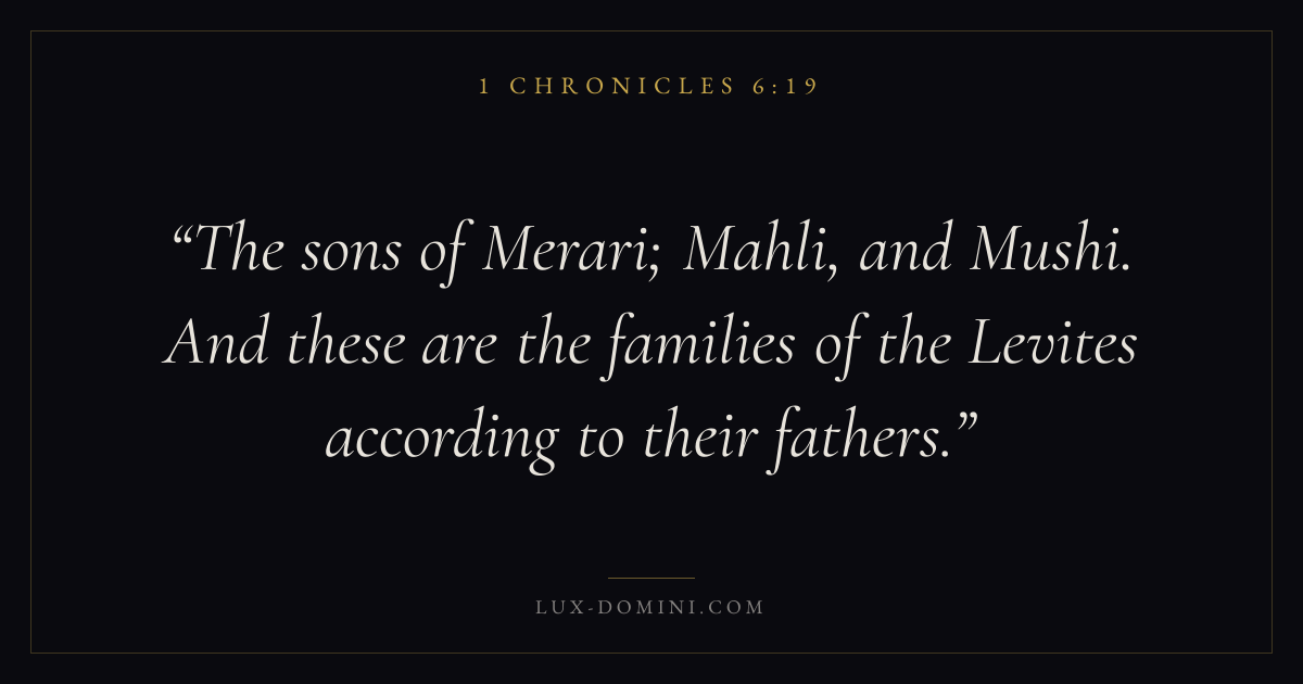 The sons of Merari; Mahli, and Mushi. And these are the families of the Levites according to their fathers.