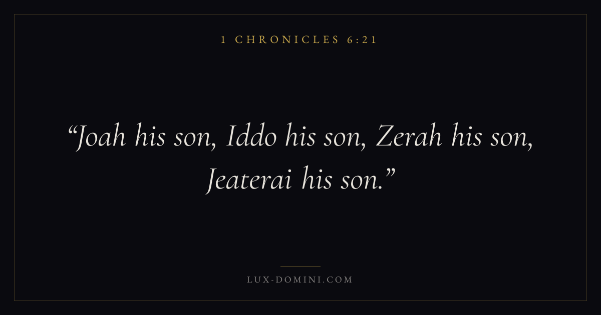 Joah his son, Iddo his son, Zerah his son, Jeaterai his son.