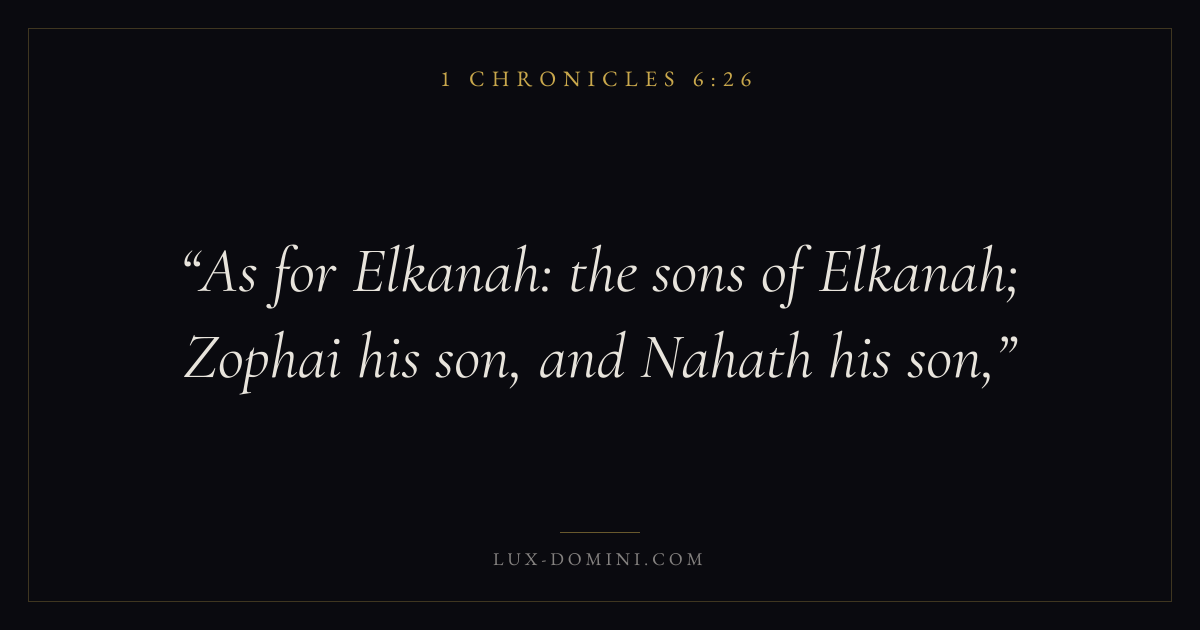 As for Elkanah: the sons of Elkanah; Zophai his son, and Nahath his son,