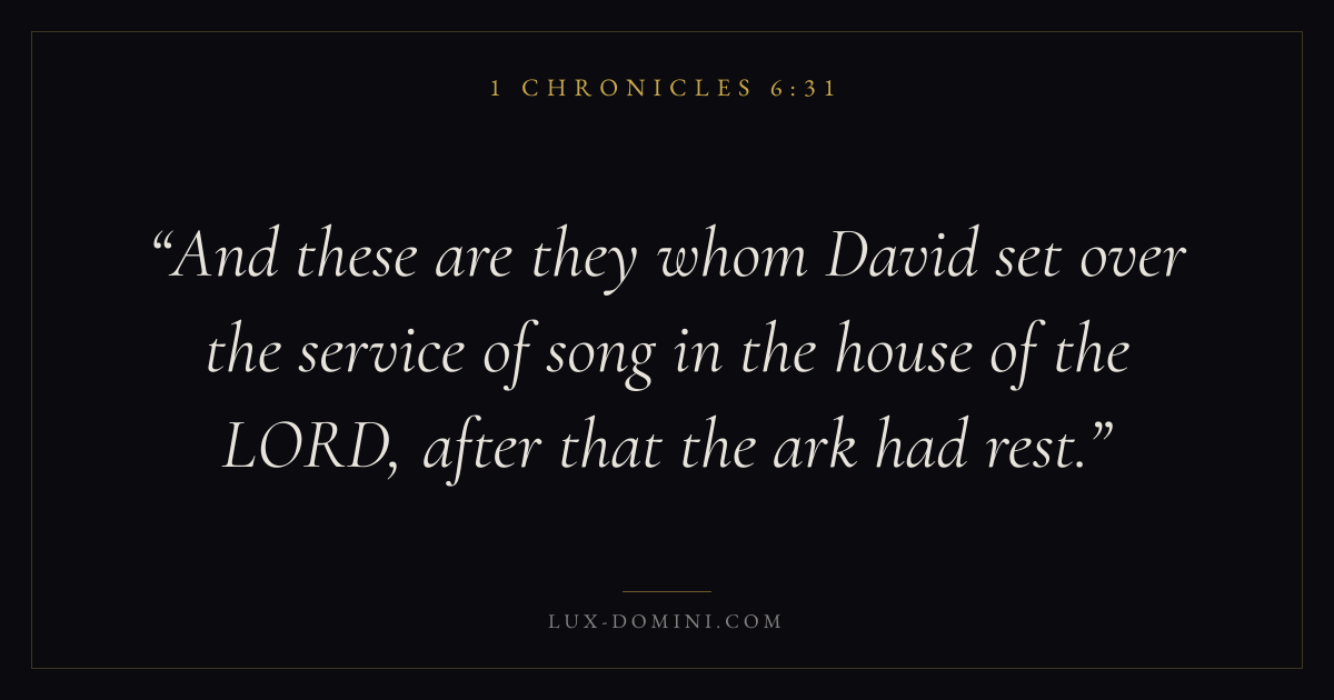 And these are they whom David set over the service of song in the house of the LORD, after that the ark had rest.