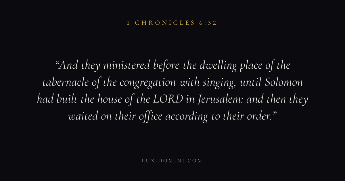 And they ministered before the dwelling place of the tabernacle of the congregation with singing, until Solomon had built the house of the LORD in Jerusalem: and then they waited on their office according to their order.
