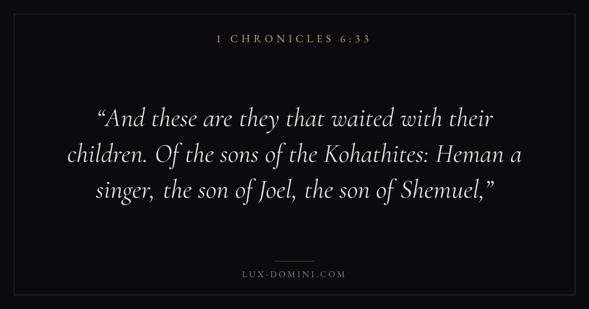 And these are they that waited with their children. Of the sons of the Kohathites: Heman a singer, the son of Joel, the son of Shemuel,