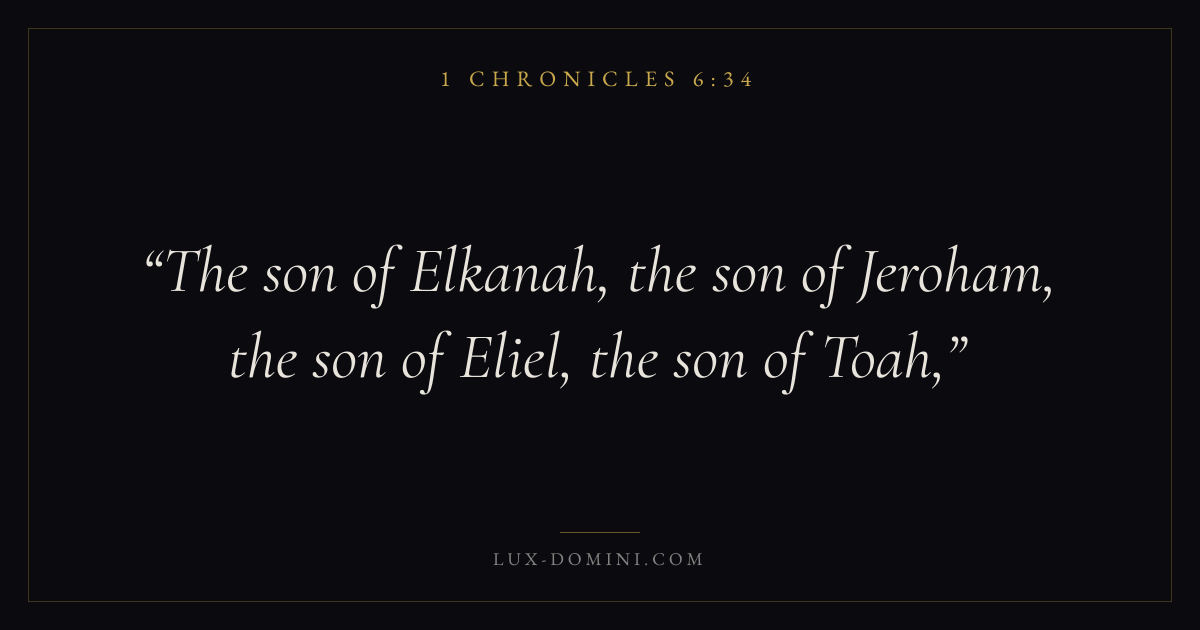 The son of Elkanah, the son of Jeroham, the son of Eliel, the son of Toah,