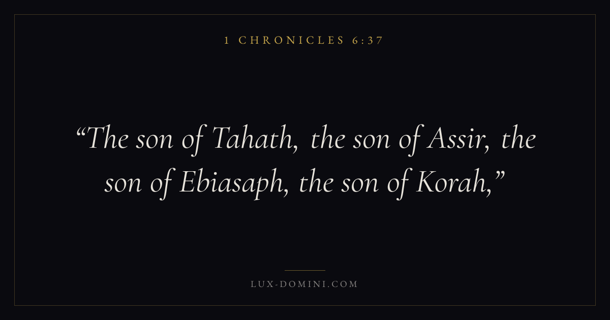 The son of Tahath, the son of Assir, the son of Ebiasaph, the son of Korah,