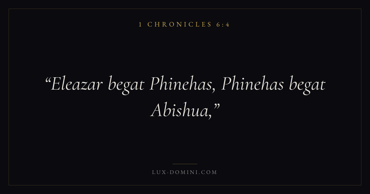 Eleazar begat Phinehas, Phinehas begat Abishua,