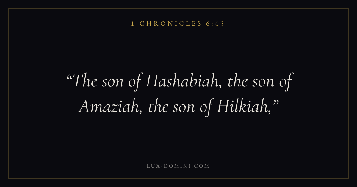 The son of Hashabiah, the son of Amaziah, the son of Hilkiah,