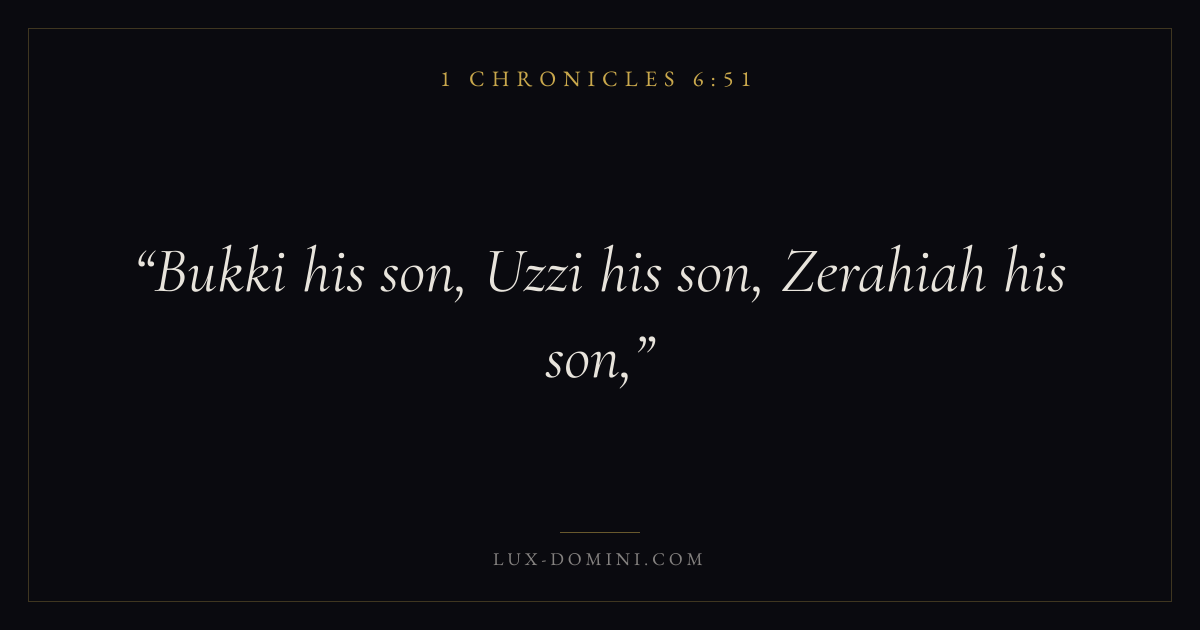Bukki his son, Uzzi his son, Zerahiah his son,
