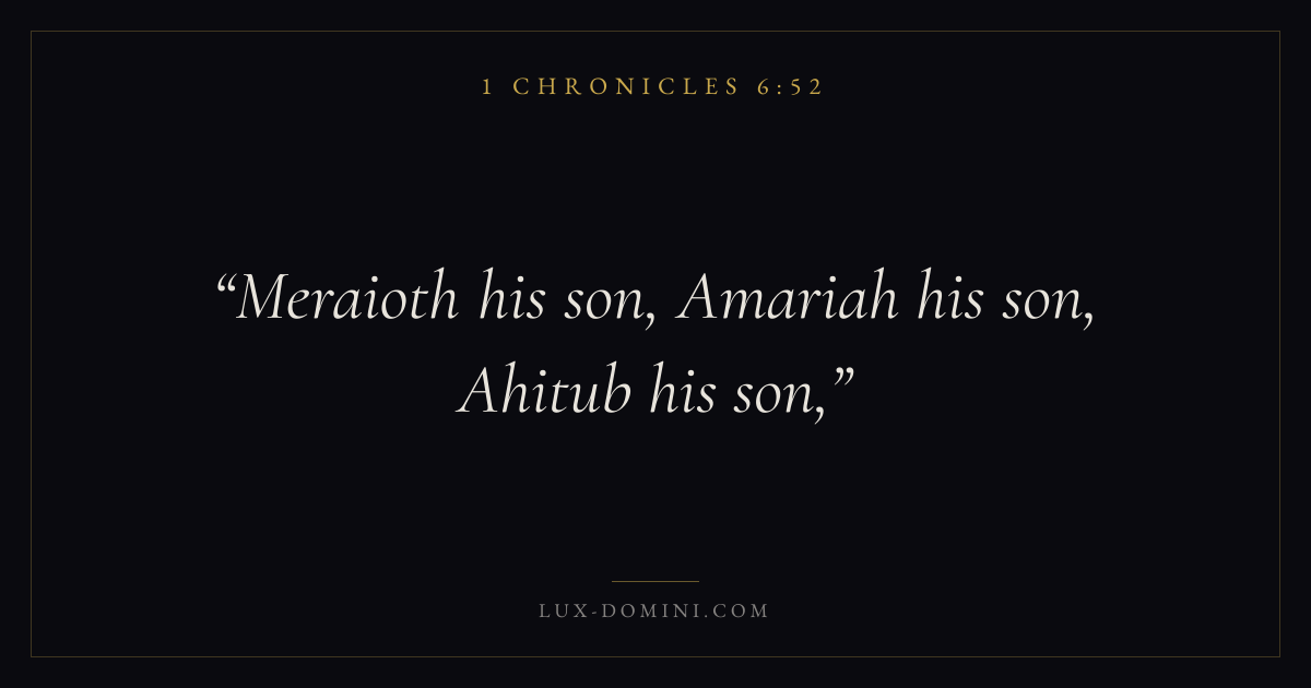 Rebellions. (1. ) Father of Amariah, a high priest of the line of Eleazar ( 1 Chr. 6:6 , 7, 52). (2. ) Neh. 12:15 , a priest who went to Jerusalem with Zerubbabel. He is called Meremoth in Neh. 12:3 .