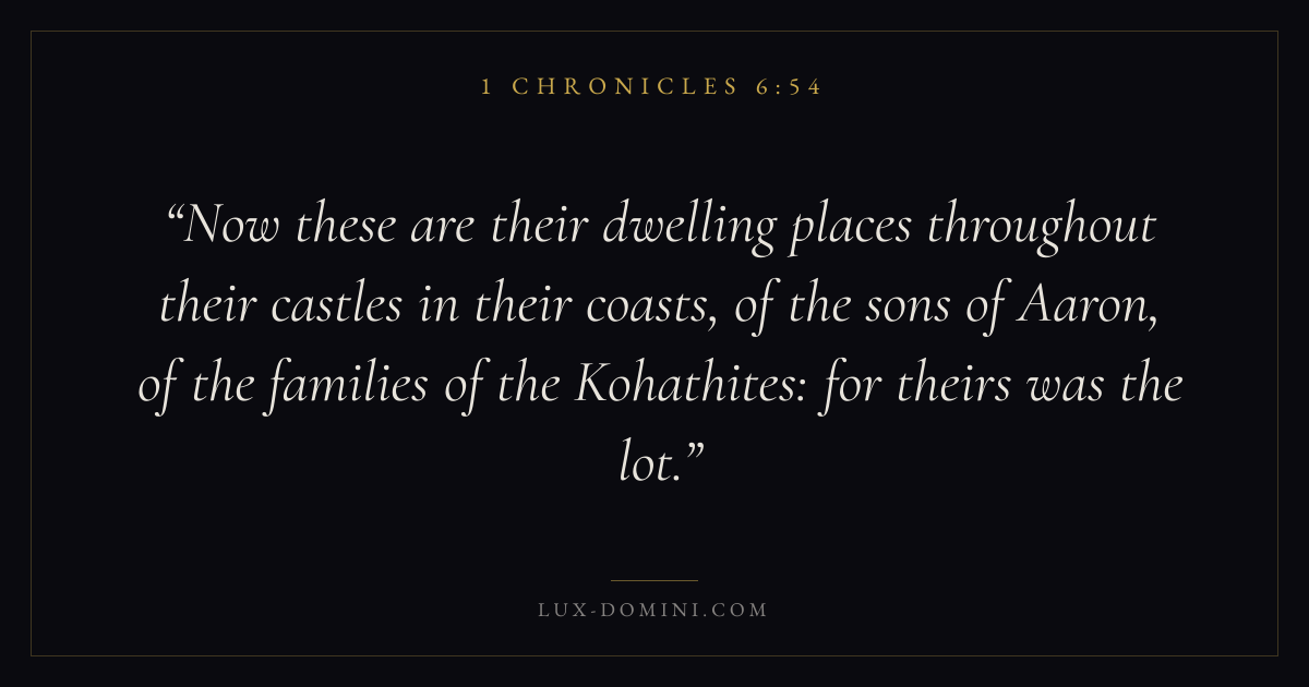 Now these are their dwelling places throughout their castles in their coasts, of the sons of Aaron, of the families of the Kohathites: for theirs was the lot.
