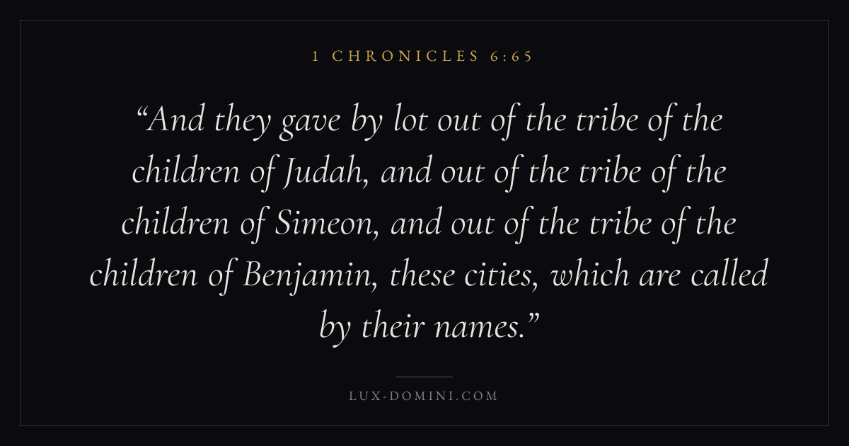 And they gave by lot out of the tribe of the children of Judah, and out of the tribe of the children of Simeon, and out of the tribe of the children of Benjamin, these cities, which are called by their names.