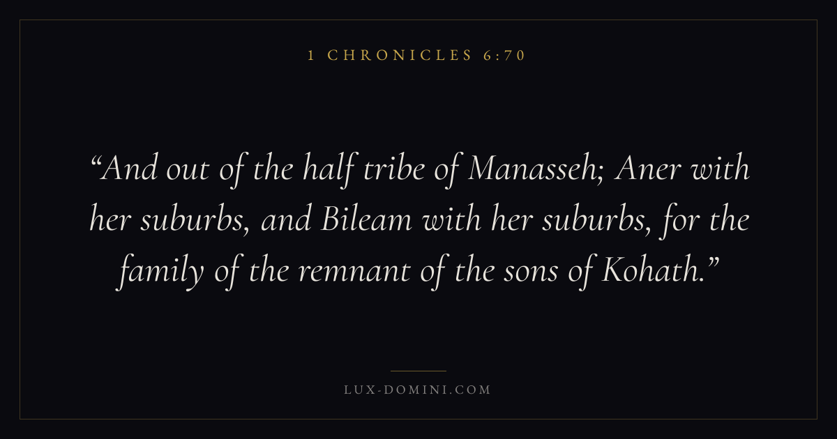 And out of the half tribe of Manasseh; Aner with her suburbs, and Bileam with her suburbs, for the family of the remnant of the sons of Kohath.