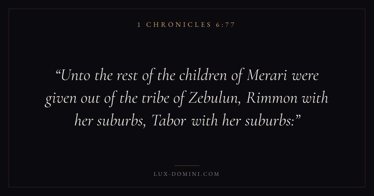 Unto the rest of the children of Merari were given out of the tribe of Zebulun, Rimmon with her suburbs, Tabor with her suburbs: