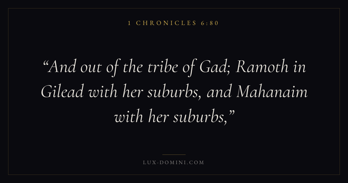 And out of the tribe of Gad; Ramoth in Gilead with her suburbs, and Mahanaim with her suburbs,