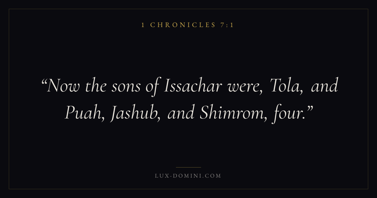 Now the sons of Issachar were, Tola, and Puah, Jashub, and Shimrom, four.
