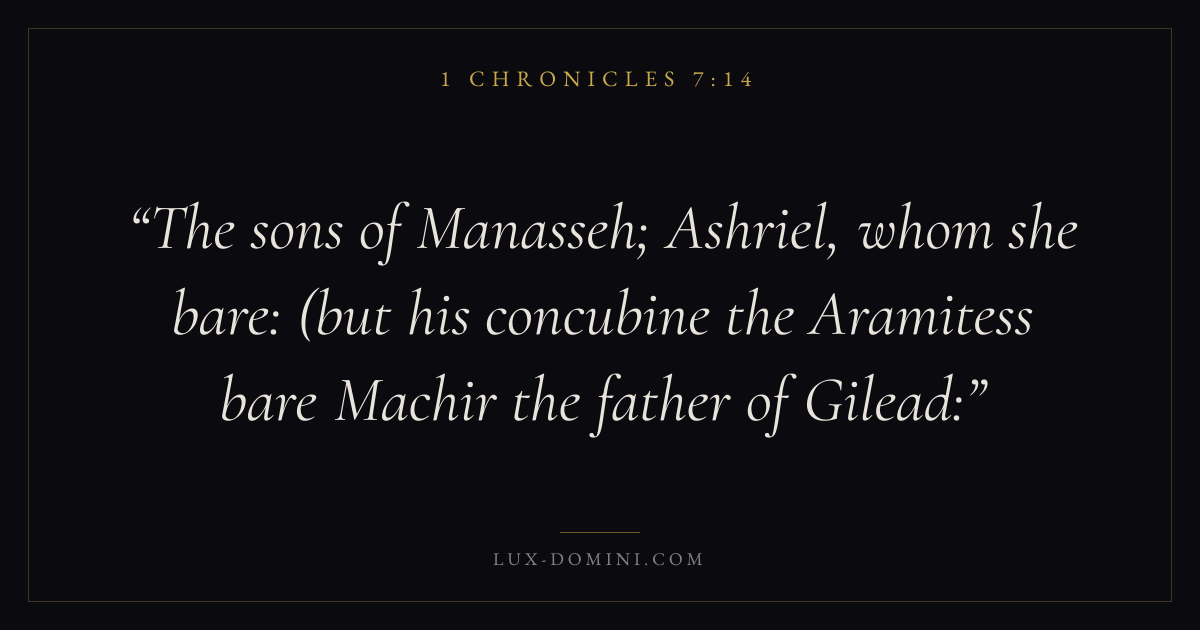 The sons of Manasseh; Ashriel, whom she bare: (but his concubine the Aramitess bare Machir the father of Gilead: