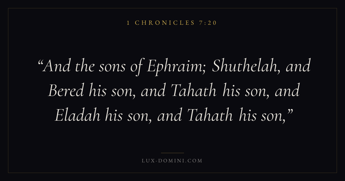 And the sons of Ephraim; Shuthelah, and Bered his son, and Tahath his son, and Eladah his son, and Tahath his son,