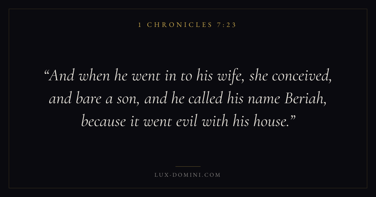 And when he went in to his wife, she conceived, and bare a son, and he called his name Beriah, because it went evil with his house.