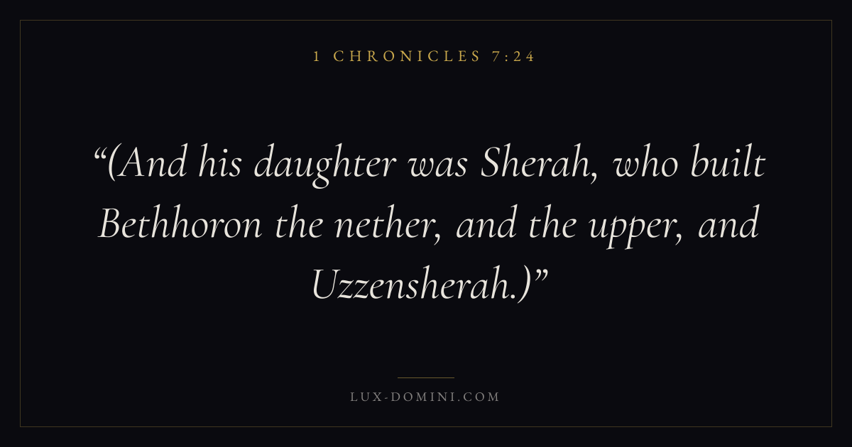 (And his daughter was Sherah, who built Bethhoron the nether, and the upper, and Uzzensherah.)