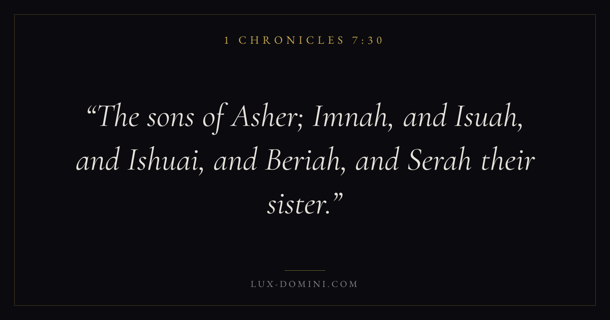 The sons of Asher; Imnah, and Isuah, and Ishuai, and Beriah, and Serah their sister.