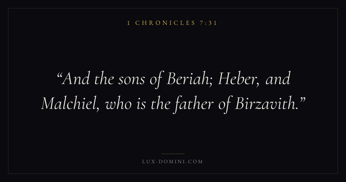 And the sons of Beriah; Heber, and Malchiel, who is the father of Birzavith.