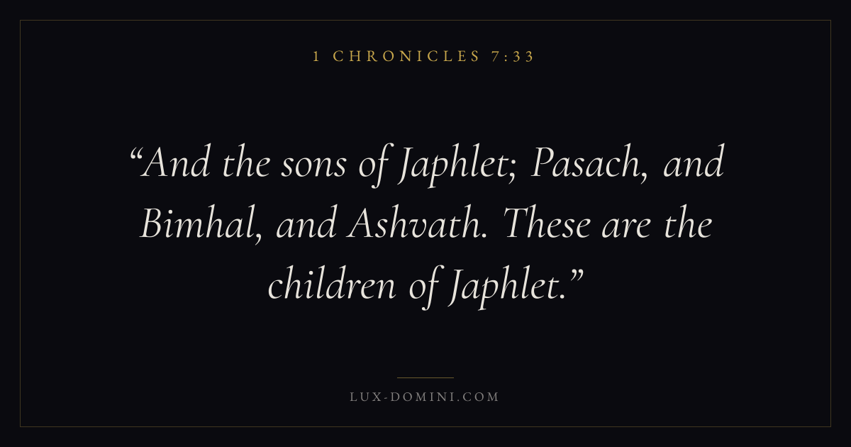 And the sons of Japhlet; Pasach, and Bimhal, and Ashvath. These are the children of Japhlet.