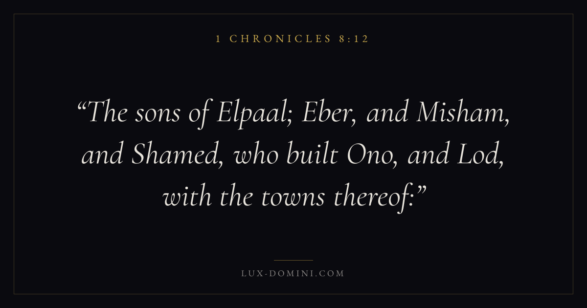 The sons of Elpaal; Eber, and Misham, and Shamed, who built Ono, and Lod, with the towns thereof: