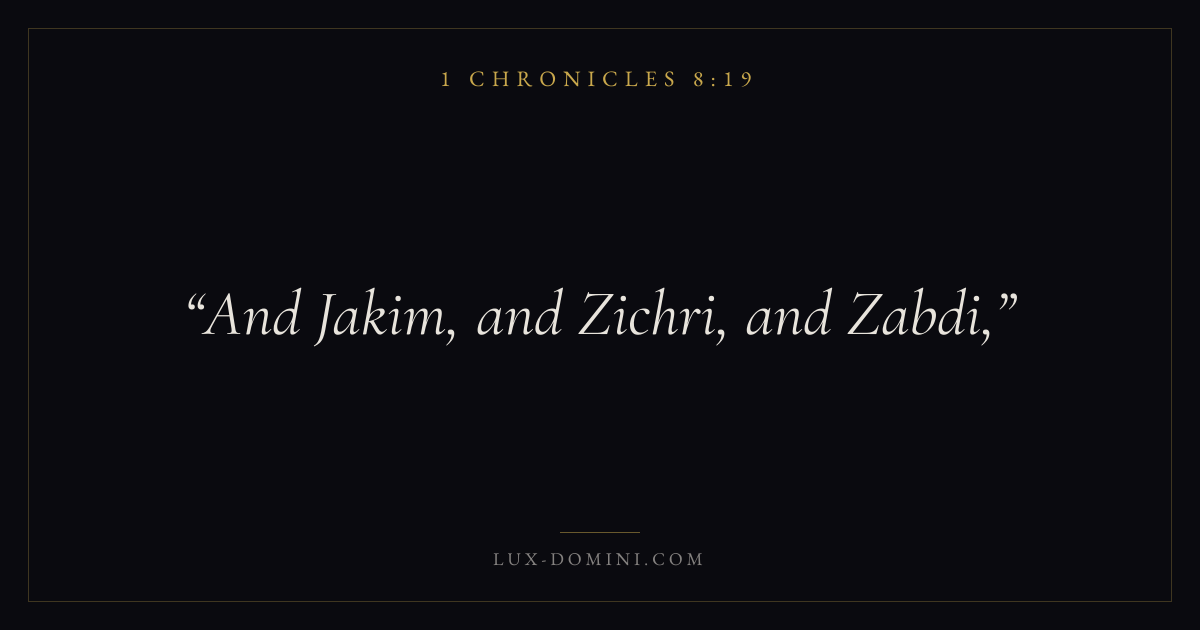 Remembered; illustrious. (1. ) A Benjamite chief ( 1 Chr. 8:19 ). (2. ) Another of the same tribe ( 1 Chr. 8:23 ).