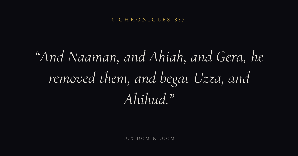 And Naaman, and Ahiah, and Gera, he removed them, and begat Uzza, and Ahihud.
