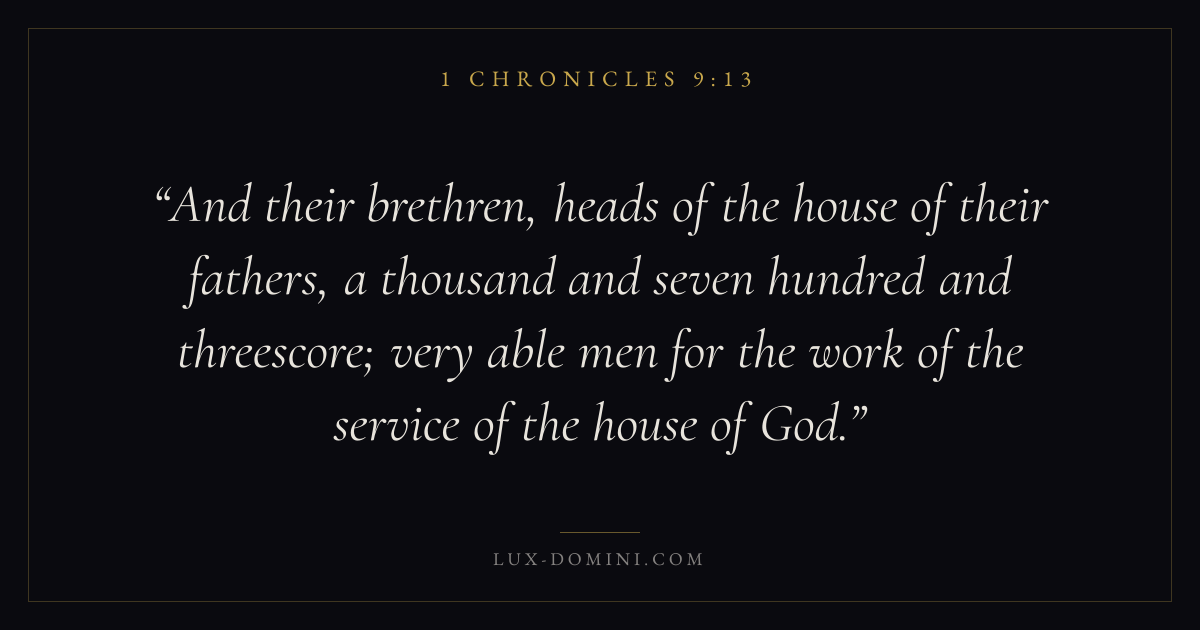 And their brethren, heads of the house of their fathers, a thousand and seven hundred and threescore; very able men for the work of the service of the house of God.