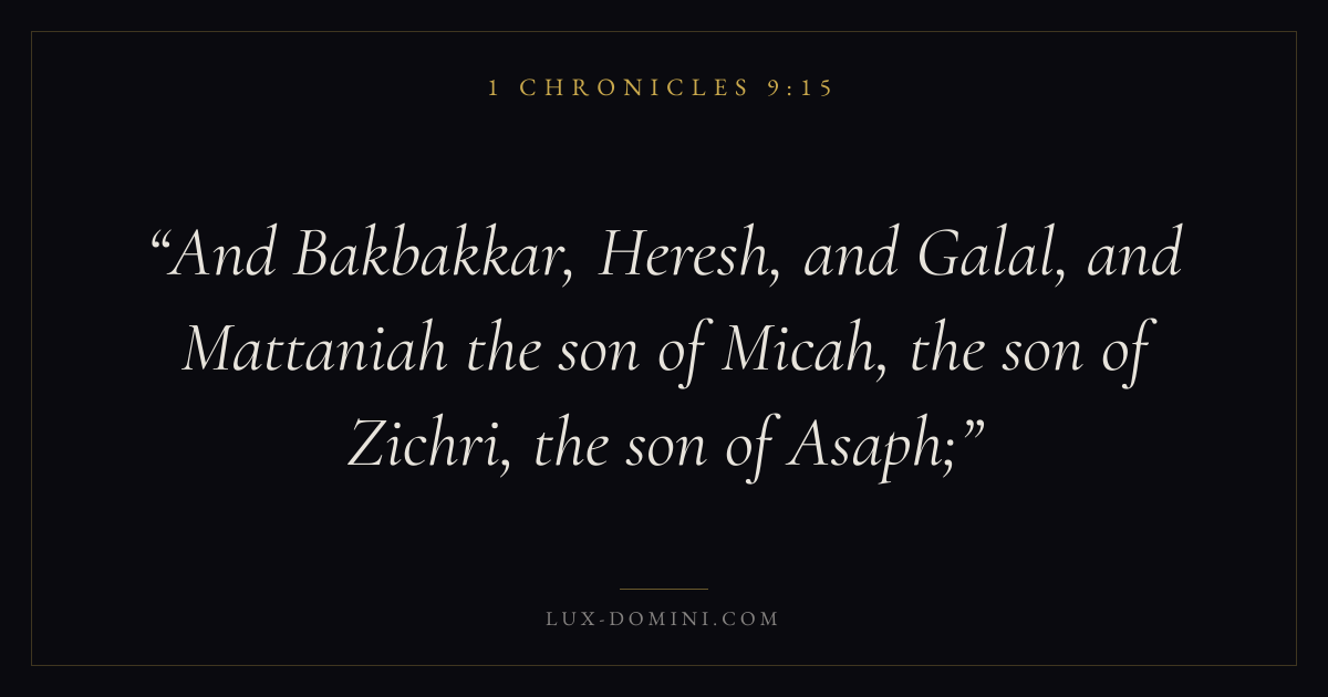 And Bakbakkar, Heresh, and Galal, and Mattaniah the son of Micah, the son of Zichri, the son of Asaph;