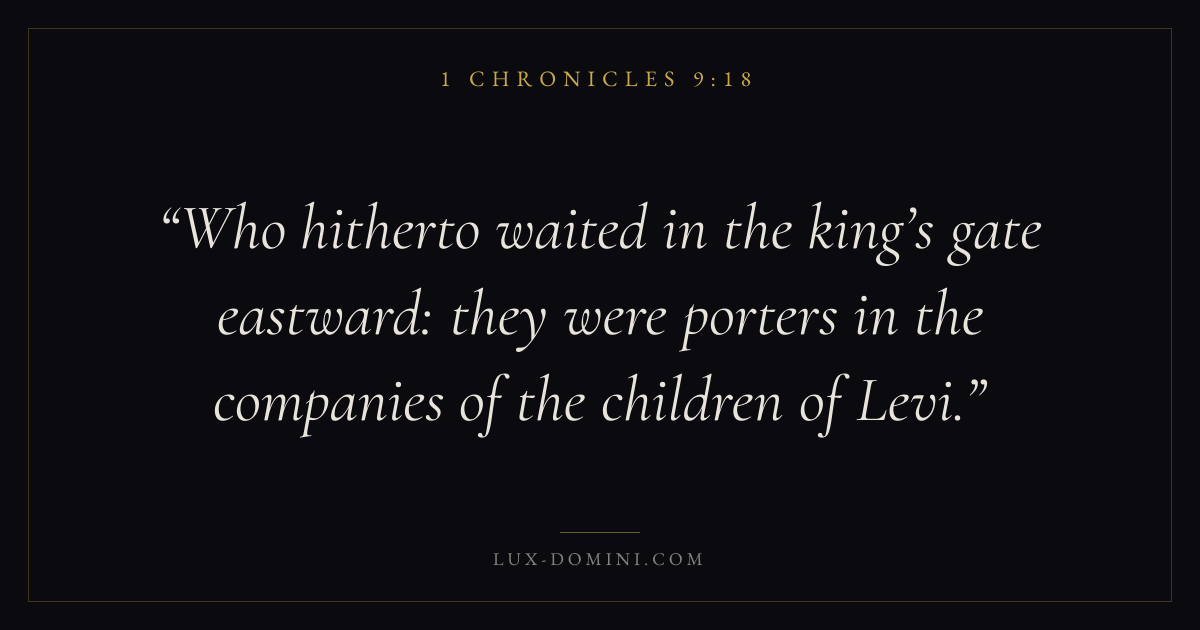 Who hitherto waited in the king’s gate eastward: they were porters in the companies of the children of Levi.