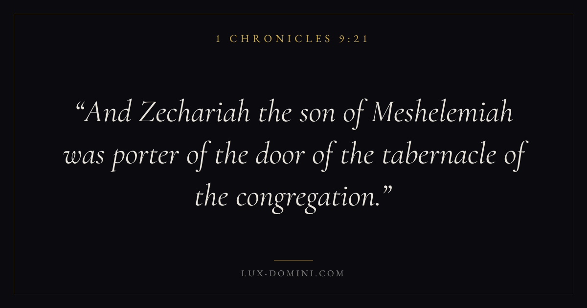 And Zechariah the son of Meshelemiah was porter of the door of the tabernacle of the congregation.