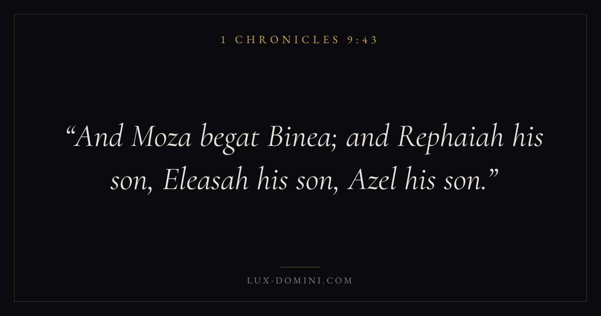 And Moza begat Binea; and Rephaiah his son, Eleasah his son, Azel his son.