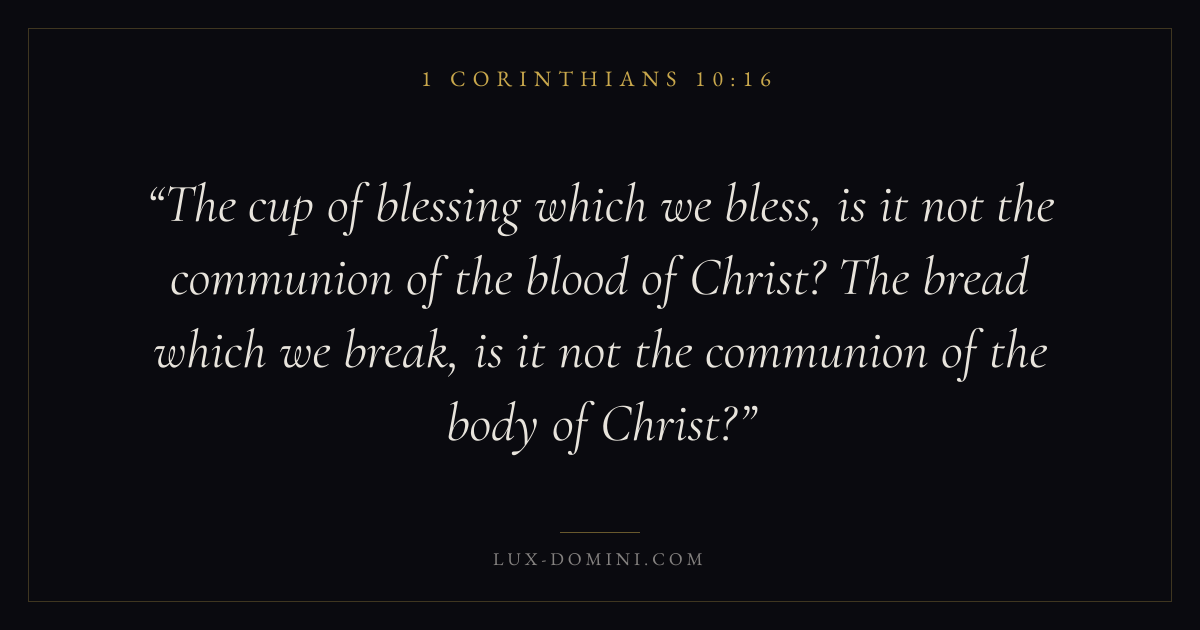 The cup of blessing which we bless, is it not the communion of the blood of Christ? The bread which we break, is it not the communion of the body of Christ?
