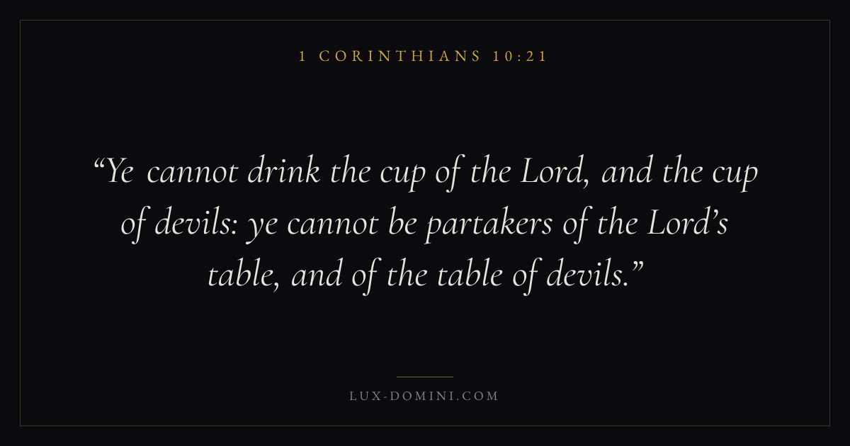 Ye cannot drink the cup of the Lord, and the cup of devils: ye cannot be partakers of the Lord’s table, and of the table of devils.