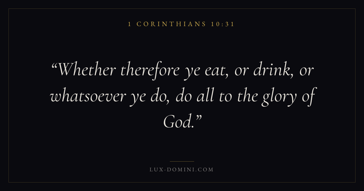 Whether therefore ye eat, or drink, or whatsoever ye do, do all to the glory of God.
