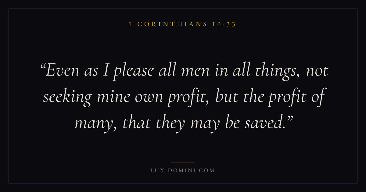 Even as I please all men in all things, not seeking mine own profit, but the profit of many, that they may be saved.
