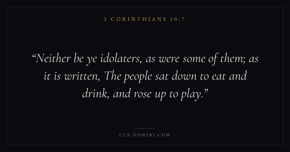 Neither be ye idolaters, as were some of them; as it is written, The people sat down to eat and drink, and rose up to play.