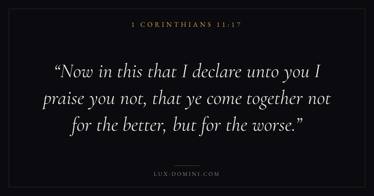 Now in this that I declare unto you I praise you not, that ye come together not for the better, but for the worse.