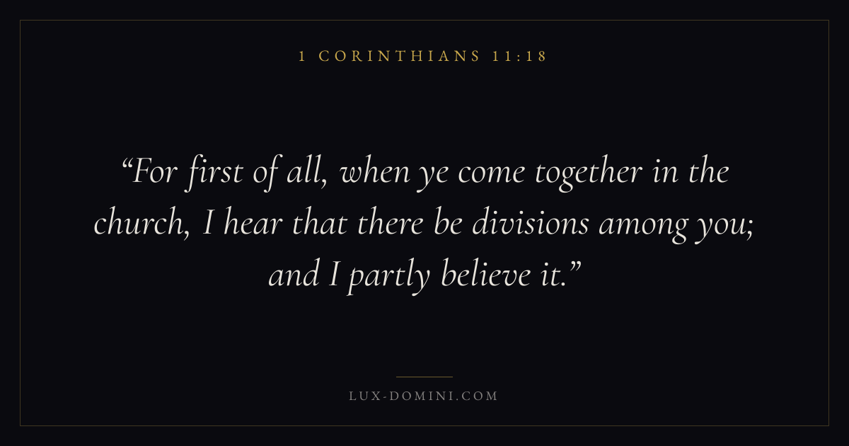 For first of all, when ye come together in the church, I hear that there be divisions among you; and I partly believe it.
