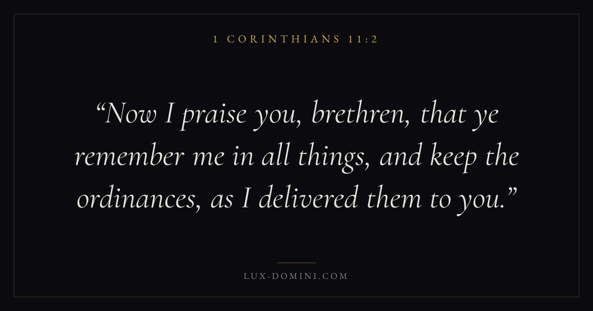 Now I praise you, brethren, that ye remember me in all things, and keep the ordinances, as I delivered them to you.