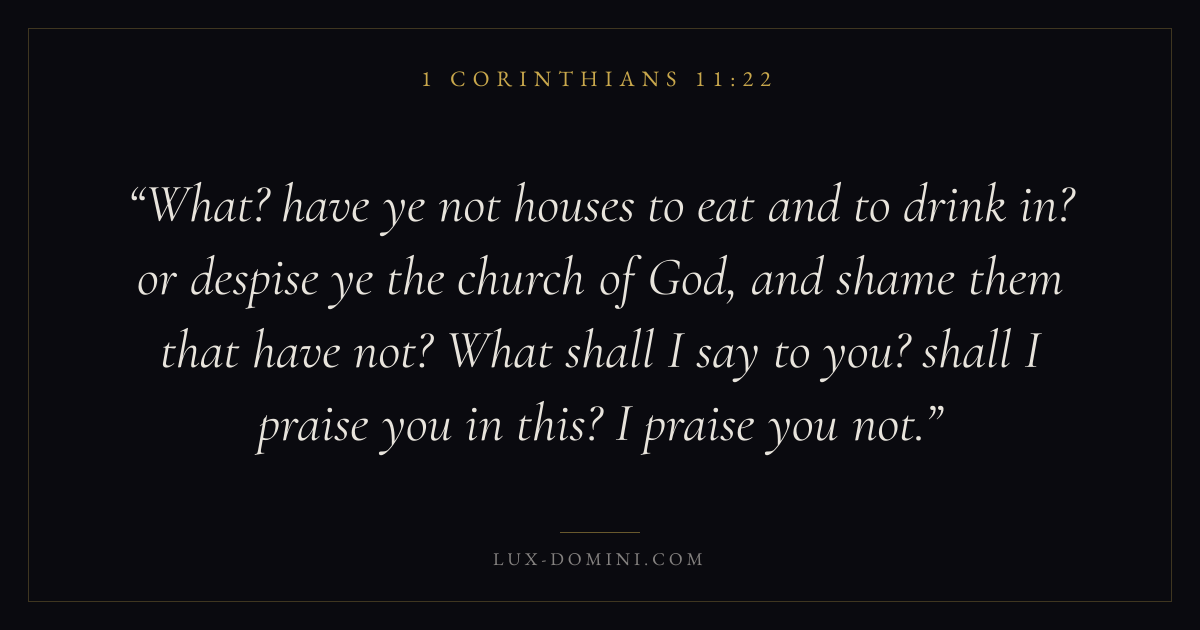 What? have ye not houses to eat and to drink in? or despise ye the church of God, and shame them that have not? What shall I say to you? shall I praise you in this? I praise you not.