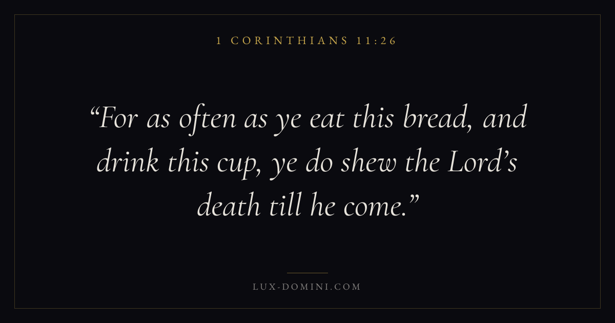 For as often as ye eat this bread, and drink this cup, ye do shew the Lord’s death till he come.