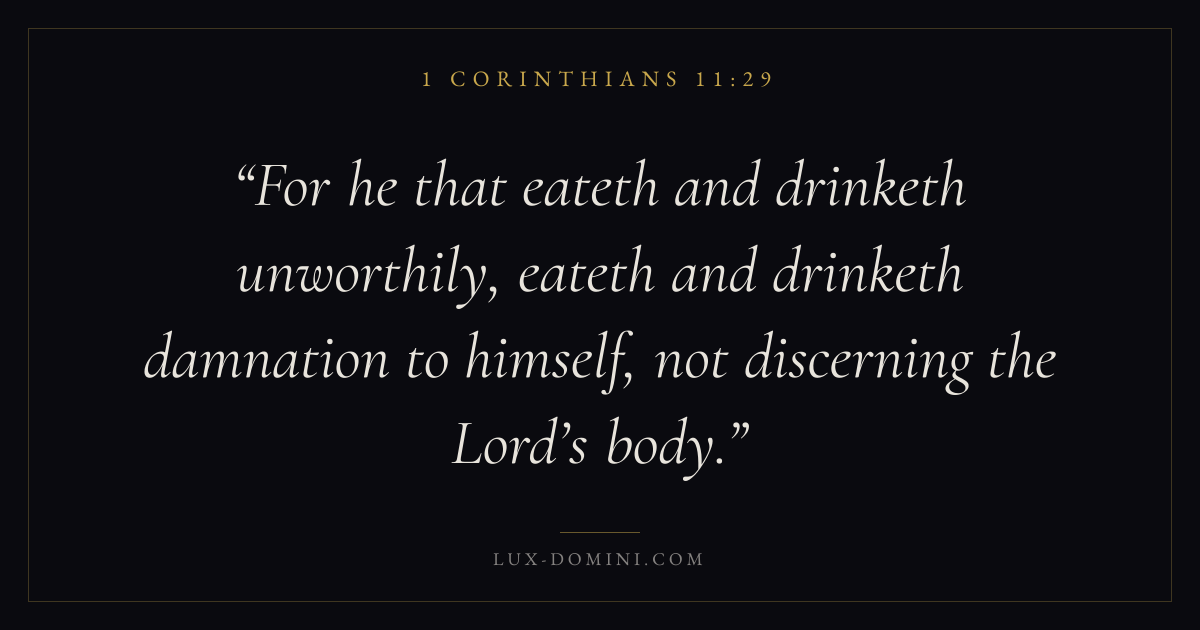 For he that eateth and drinketh unworthily, eateth and drinketh damnation to himself, not discerning the Lord’s body.