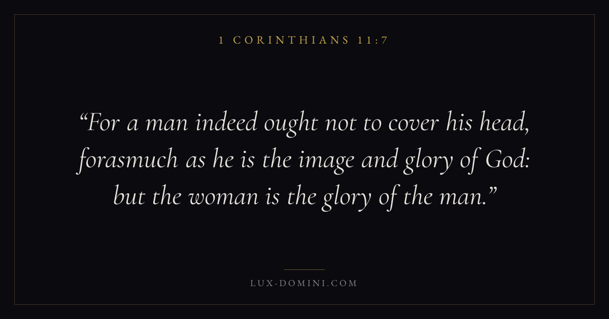 For a man indeed ought not to cover his head, forasmuch as he is the image and glory of God: but the woman is the glory of the man.