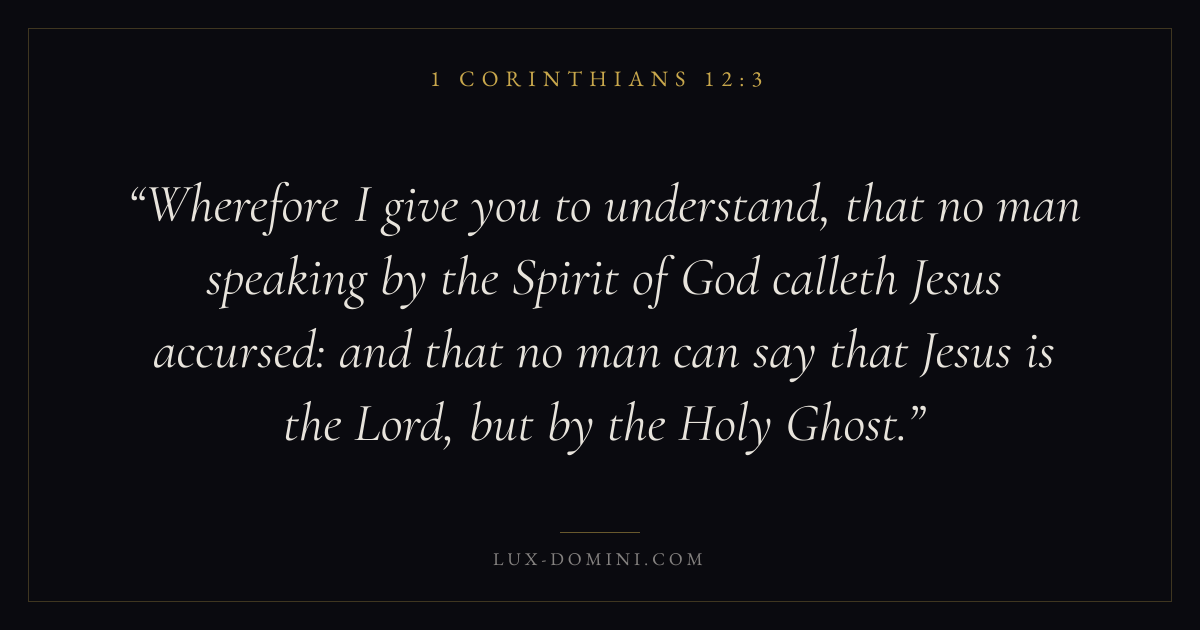 Wherefore I give you to understand, that no man speaking by the Spirit of God calleth Jesus accursed: and that no man can say that Jesus is the Lord, but by the Holy Ghost.
